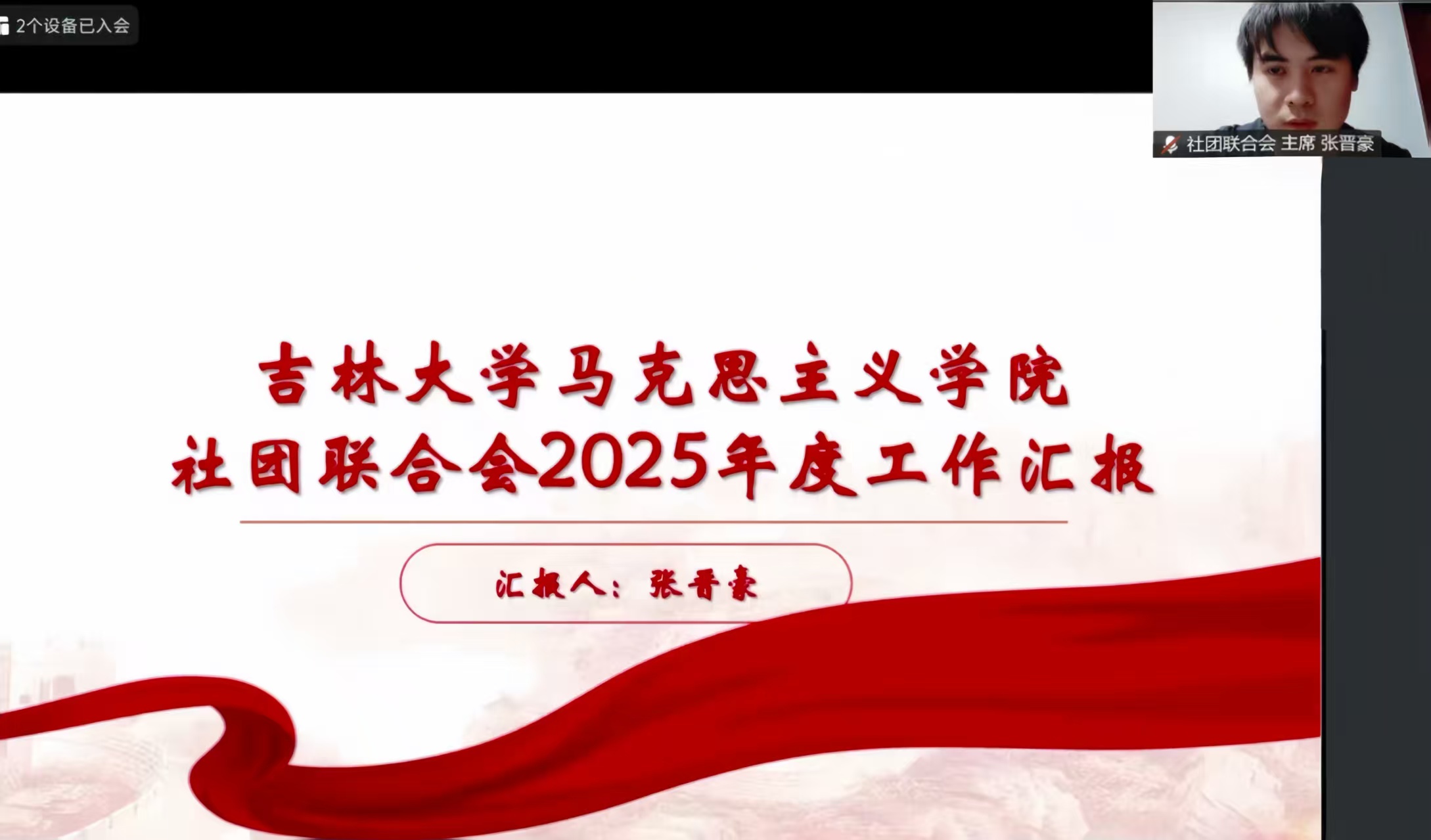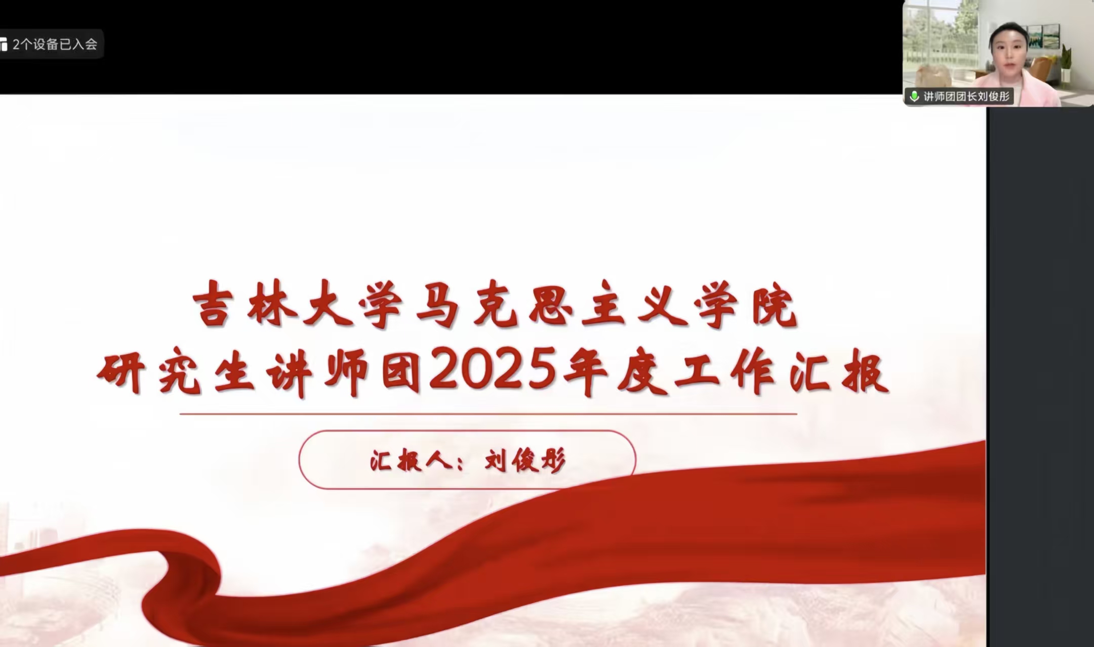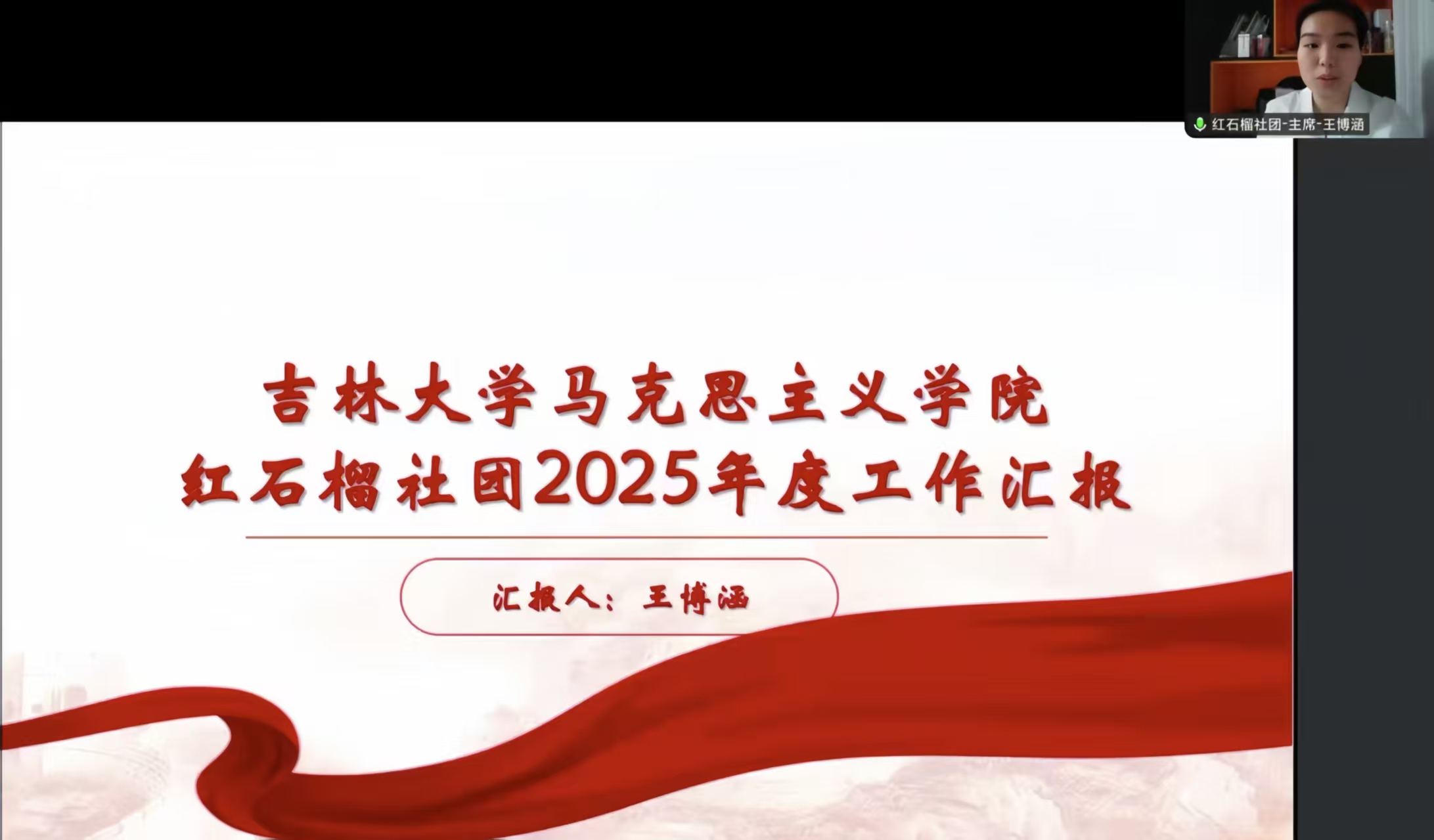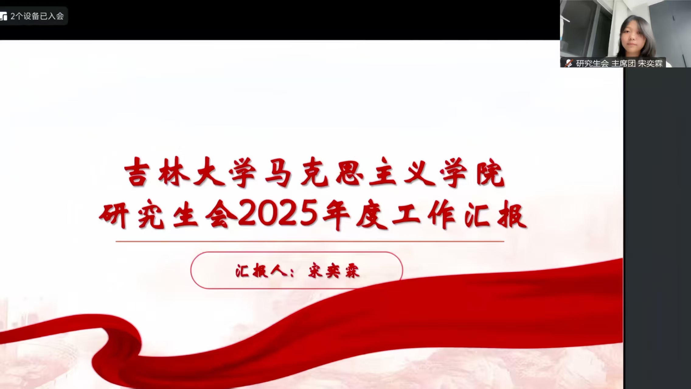 为迎接吉林大学建校80周年、系统总结马克思主义学院工作经验、深入推进新学期学团工作开展,2月7日晚,学院以线上形式召开“守正创新担使命,凝心聚力启新程”2025年度研究生学团工作总结暨2026年工作展望大会。本次会议由团委副书记石晓昱主持,研究生学团组织全体成员参加。