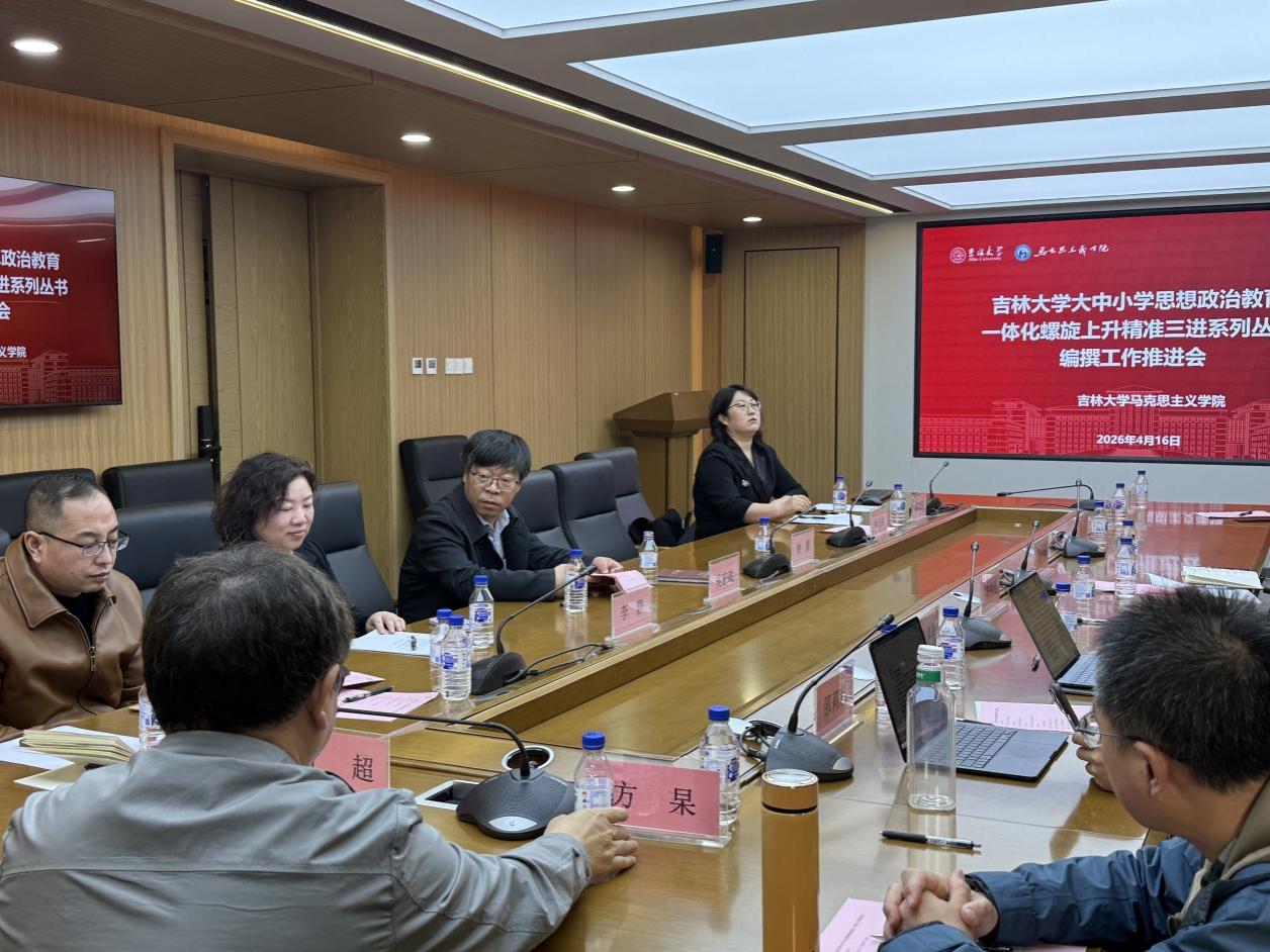 为深入贯彻落实习近平总书记在全国教育大会上的重要讲话精神,聚焦落实新时代立德树人工程,扎实推进大中小学思想政治教育一体化建设,2026年4月16日在吕振羽楼320会议室,学院召开《大中小学思想政治教育一体化螺旋上升精准三进》系列丛书编撰工作推进会。院长吴宏政教授、系列丛编撰团队成员参加会议,共商丛书编撰、质量把控与落地推进事宜。会议由学院副院长李静教授主持。