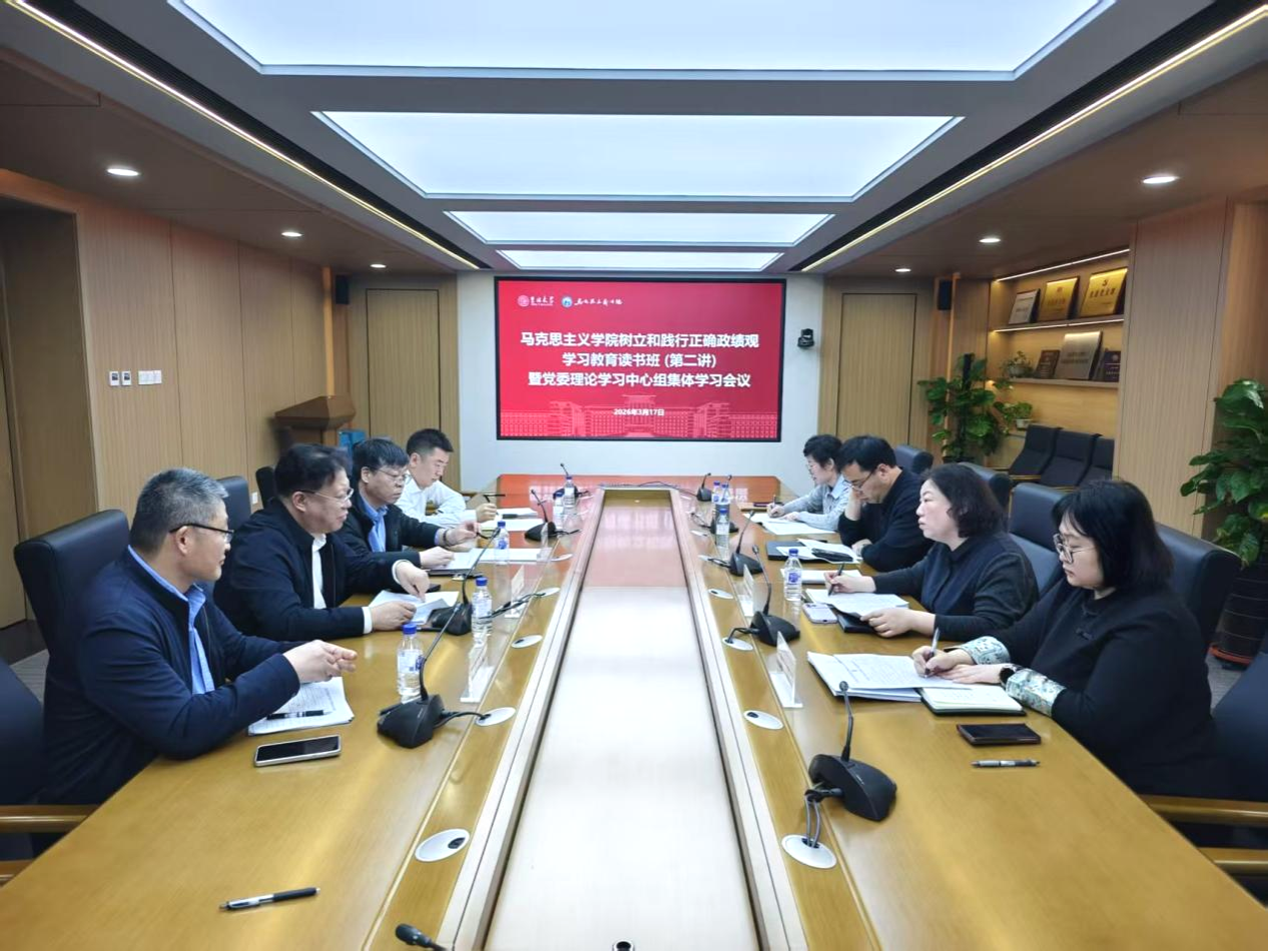 2026年3月17日,马克思主义学院召开树立和践行正确政绩观学习教育读书班(第二讲)暨党委理论学习中心组集体学习会议。学院全体领导班子成员参加会议,会议由学院党委书记钟新主持。