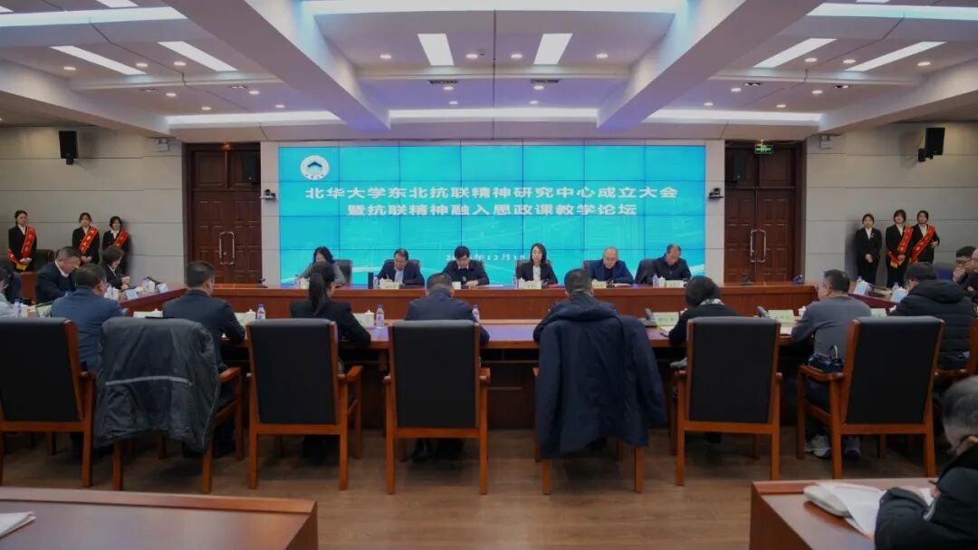 12月15日,北华大学东北抗联精神研究中心成立大会暨东北抗联精神融入思政课教学论坛在东校区机关一楼会议室举行。