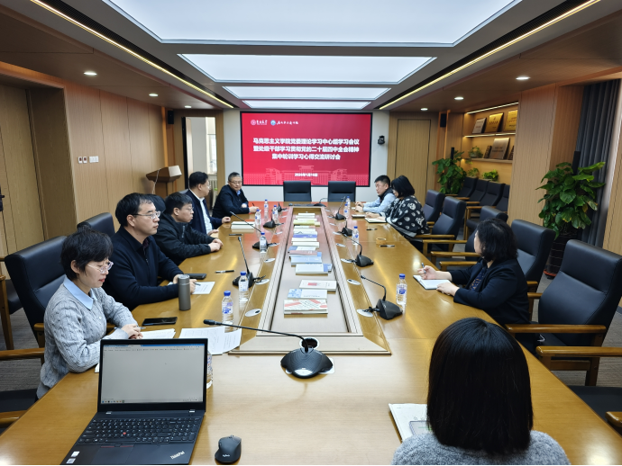 2026年1月16日,马克思主义学院在吕振羽楼320会议室召开党委理论学习中心组学习会议,交流处级干部学习贯彻党的二十届四中全会精神集中轮训学习心得。会议由学院党委书记钟新主持。