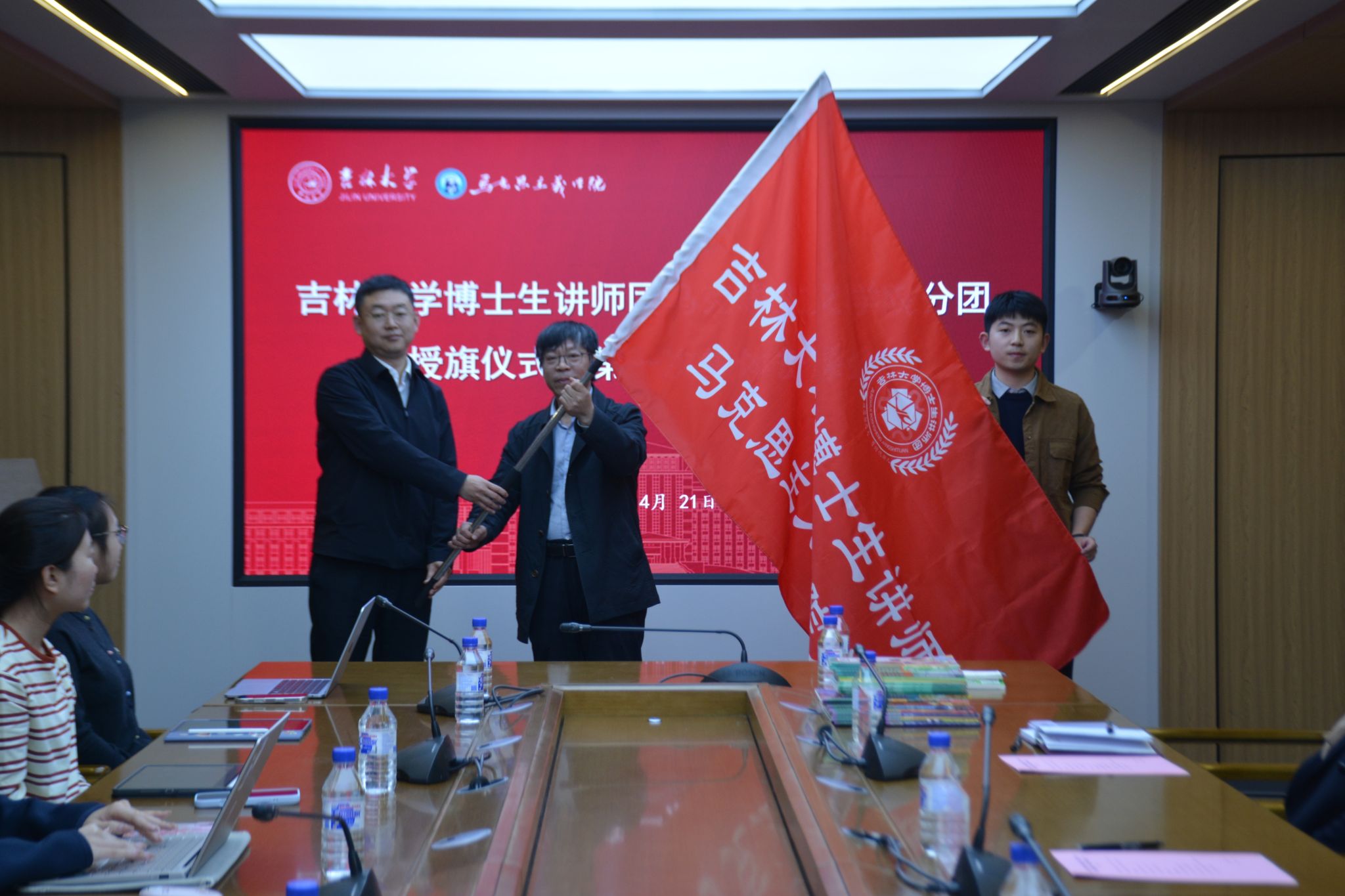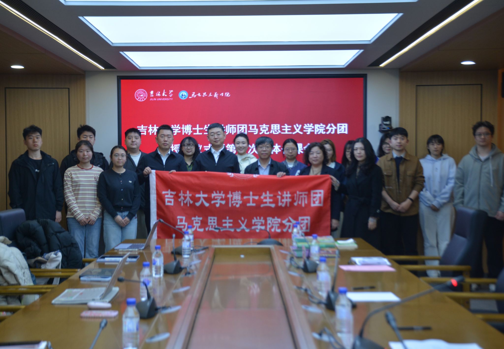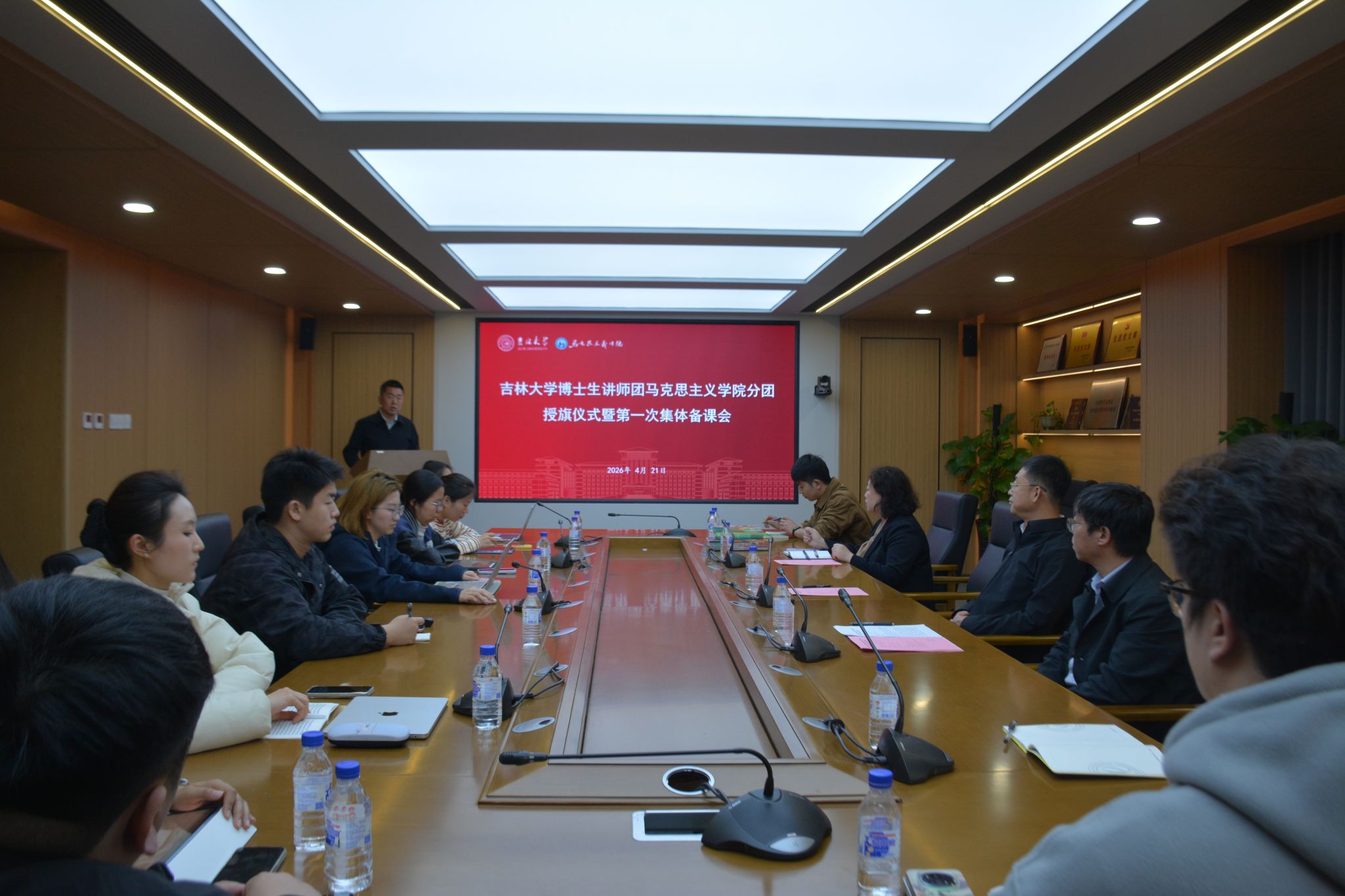 4月21日,吉林大学博士生讲师团马克思主义学院分团授旗仪式暨第一次集体备课会在中心校区吕振羽楼320会议室举行。校党委研究生工作部部长赵玥,马克思主义学院院长吴宏政、副院长李静及分团全体成员参加会议。会议由马克思主义学院党委副书记兼副院长、纪委书记金光旭主持。