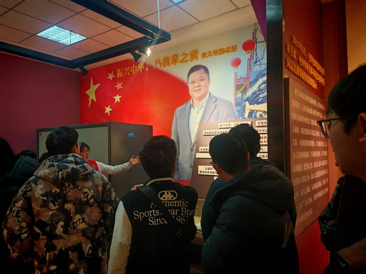 纪念馆内陈列丰富,通过实物、图片、影像和文献等多种形式,展现了黄大年老师从海外求学到毅然归国、从潜心科研到教书育人的一生。纪念馆中有黄老师在入党志愿书中的一句话,他写道“若能做一朵小小的浪花奔腾,呼啸加入献身者的滚滚洪流中,推动人类历史向前发展,这才是一生中最值得骄傲和自豪的事”。在讲解员的深情讲述中,黄老师深厚的家国情怀、严谨的治学态度和无私的育人精神深深打动了在场的每一位师生。