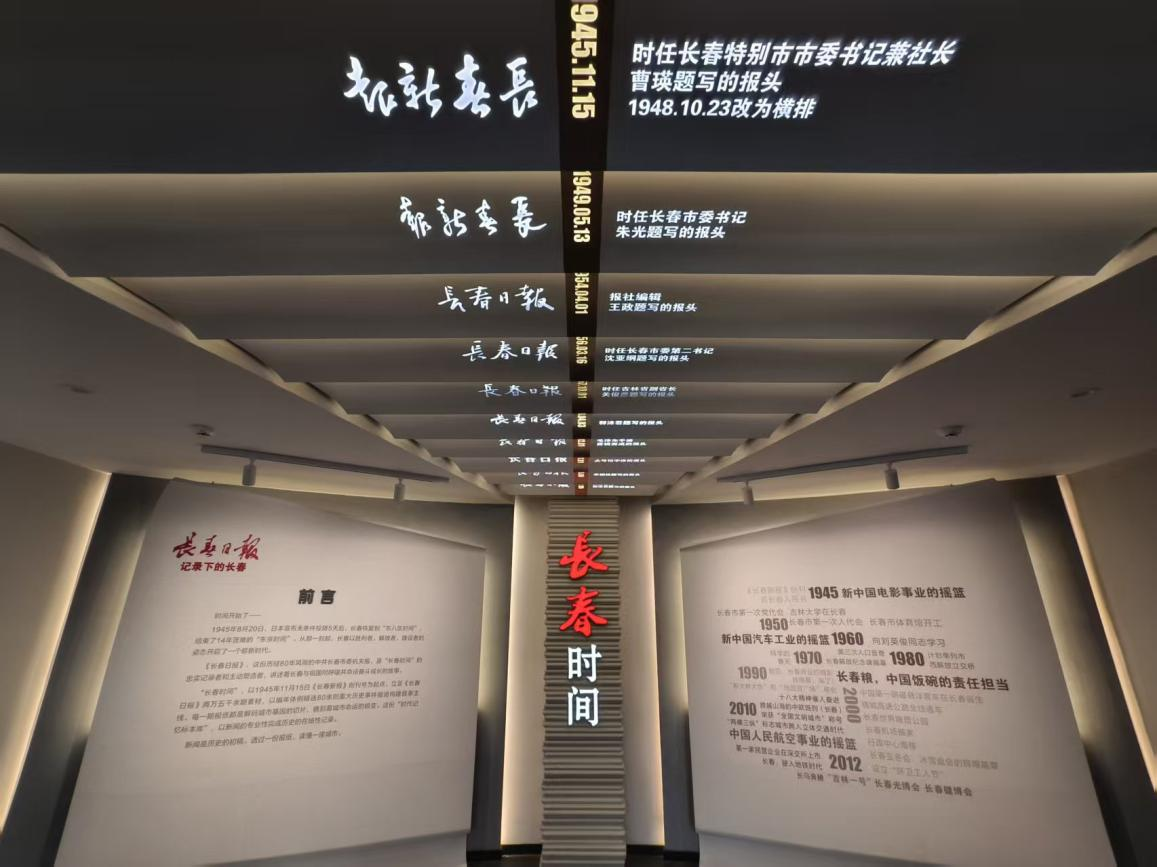 一踏入“长春时间”展区,一条由历年重要报纸版面串联而成的“时光隧道”便将同学们瞬间拉回岁月深处。从《长春日报》等纸媒的创刊号到报道城市重要发展的版面,清晰镌刻着长春从东北工业重镇到新时代创新高地的奋斗足迹。同学们纷纷驻足细读,深刻感受到:媒体的变迁不仅是技术的进步,更是一座城市、一个国家发展脉搏最直接的跳动,这些文字早已成为凝聚集体记忆、传承时代精神的精神密码。