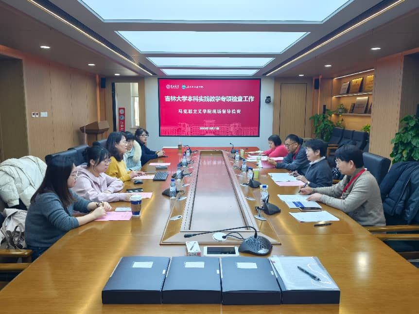 根据学校《关于开展吉林大学本科实践教学专项检查工作的通知》,2025年12月11日下午,学校本科实践教学工作专家指导组王庆华、衣保中、白艳、李博一行莅临马克思主义学院开展现场督导检查。马克思主义理论系付秀荣主任,教师代表陈方南、康雯嘉、宋畅,教学办公室主任于敏,教学秘书张皓,学生代表王家豪、佘盛达、郭树鹏、孙礼滨、邱诗桀出席了本次会议。会议由王庆华主持。